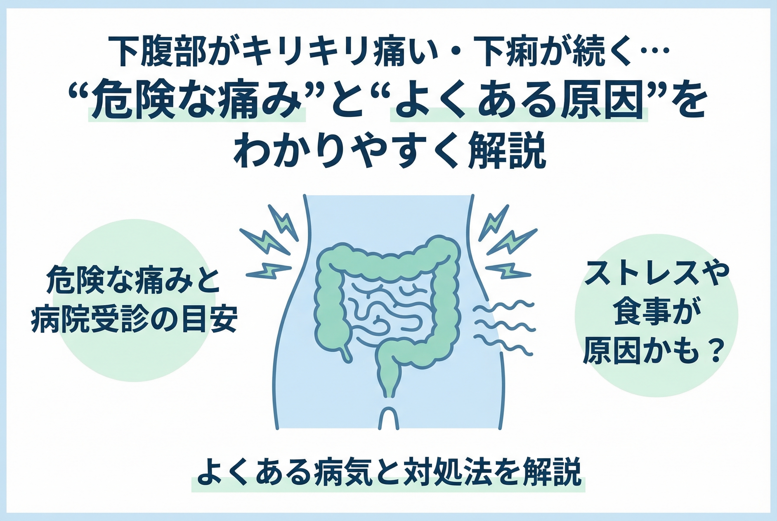 今回は、急な下腹部のキリキリとした痛みや下痢について、危険なサインとよくある原因を詳しく解説しました。
